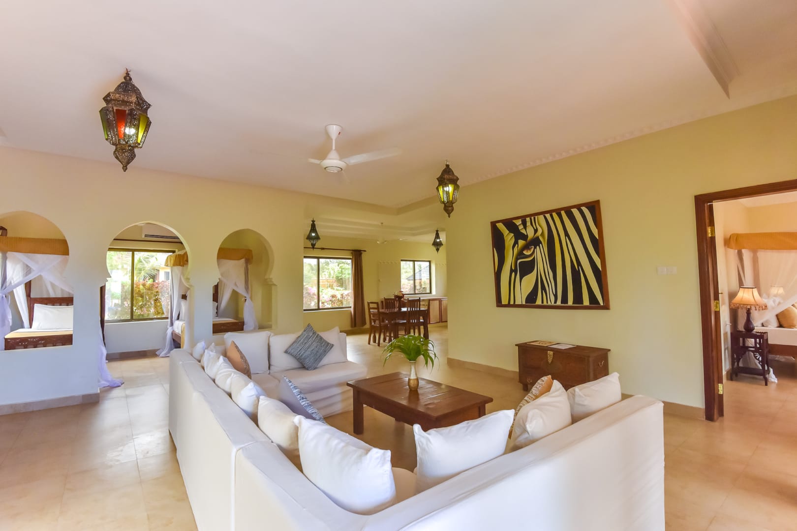 Create lasting memories in our Family Villas designed for the perfect family getaway. The master bedroom with an unsuited bathroom, external shower, balcony, terrace, Air conditioning, Ceiling fans, Refrigerator, Tea/Coffee Maker, Electronic safe box, Hairdryer and bathroom amenities, Veranda and terrace and queen-size bed offers comfort, while the living room provides space for quality time, additional features include an alcove with two single beds.